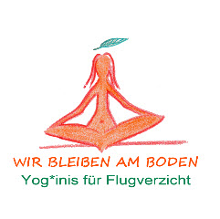 „wir bleiben am Boden“ signalisiert das Flugselbstverzichtslabel für Yog*inis und Yogastudios/ -schulen,